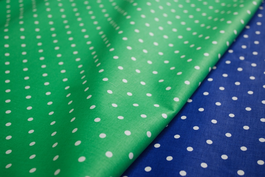 A pure cotton fabric wide cm. 150, available in 2 colors: green and blue. Partenope is a nice dot design suitable to produce kitchen articles, creative articles or, why not, different items for child.
